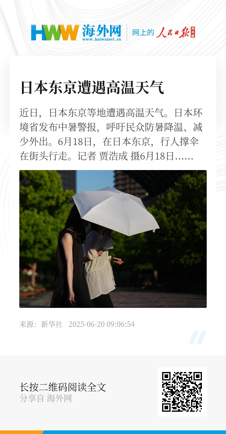 近日,日本东京等地遭遇高温天气。日本环境省发布中暑警报,呼吁民众防暑降温、减少外出。