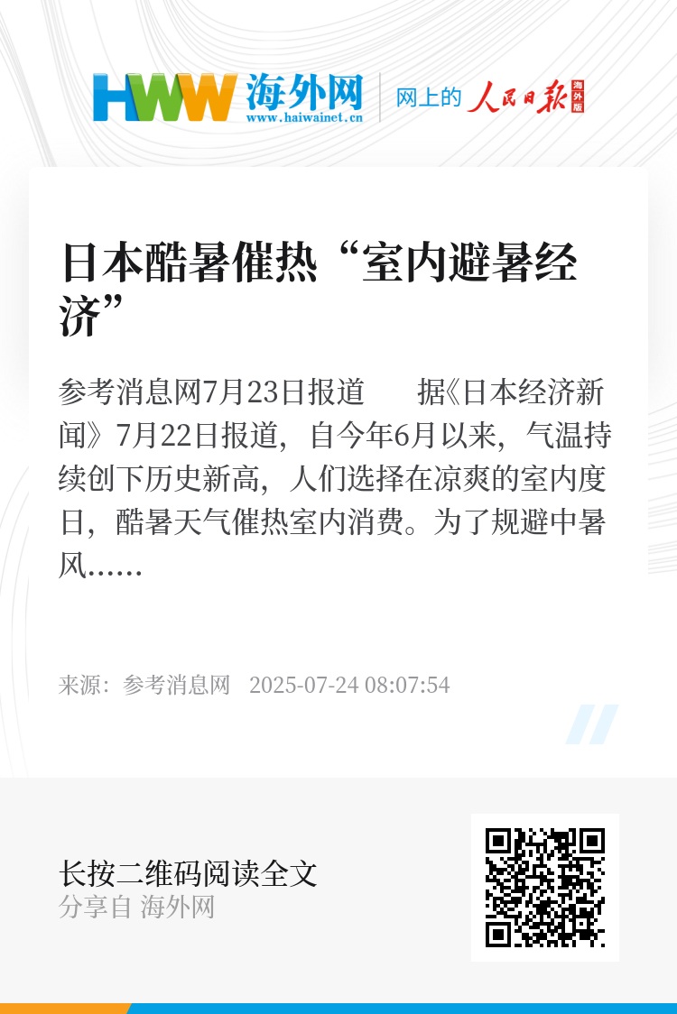 参考消息网7月23日报道 据《日本经济新闻》7月22日报道,自今年6月以来,气温持续创下历史新高,人们选择在凉爽的室内度日,酷暑天气催热室内消费。为了规避中暑风险,人们涌向空调环境舒适的场所,电影院、室内游乐场成为热门去处。外卖订单数量也显著增加。这股由酷暑催生的“避暑经济”,正有力支撑着因高温而低迷的户外消费。