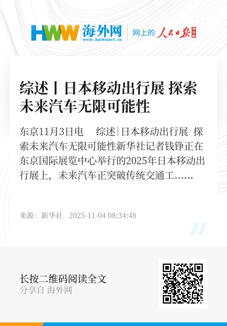 新华社东京11月3日电 综述|日本移动出行展 探索未来汽车无限可能性