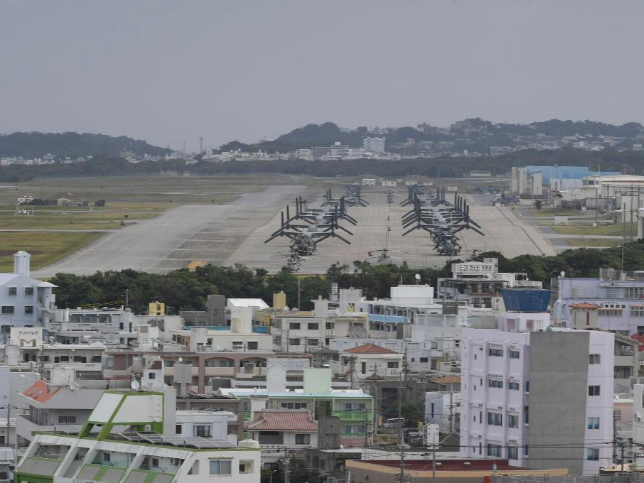这是2023年11月25日在日本冲绳美军普天间基地驻留的“鱼鹰”运输机。新华社记者冯武勇摄
