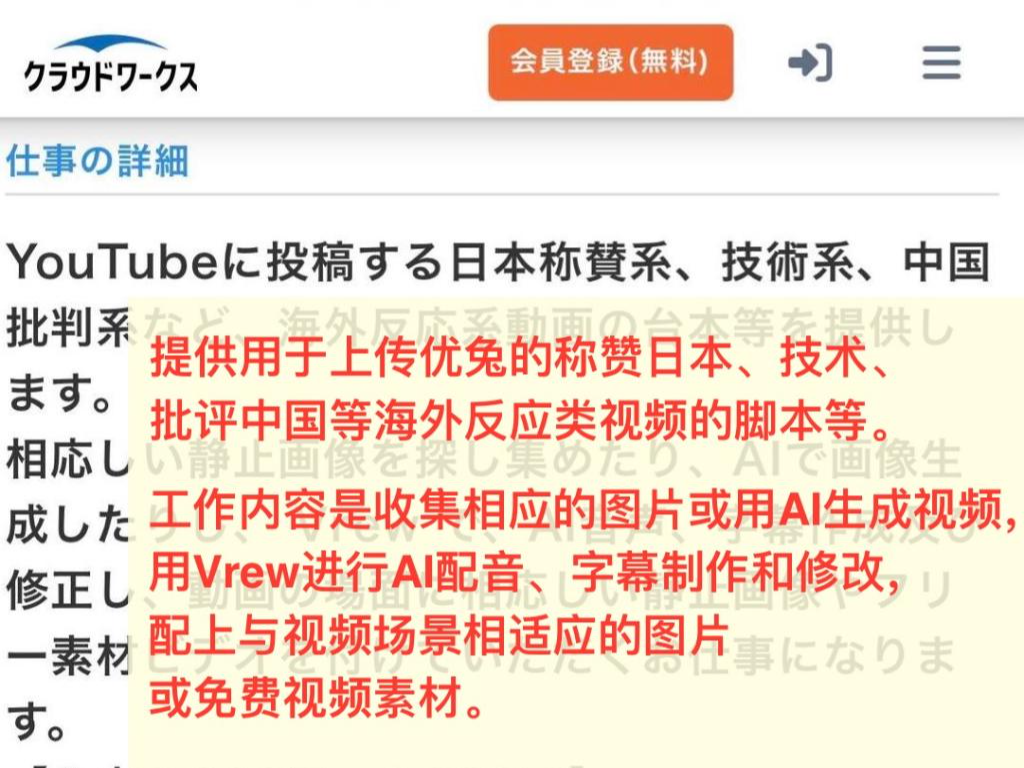 11月下旬以来,CrowdWorks网站上多条招募帖文引发关注。这些帖文面向视频制作者征集视频,主题须为“称赞日本”“批评中国”等内容。