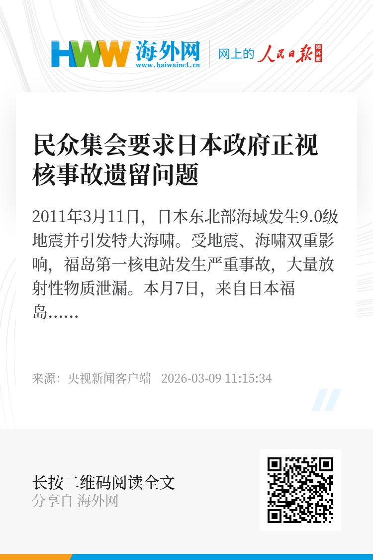 集会参加者:福岛核事故发生至今已经整整15年了,相关方面仍然没有考虑清楚在今后究竟该如何解决这一问题。还没有明确前景的情况下,日本政府却在不断推进核电站重启工作,对此我感到非常危险,也非常害怕。