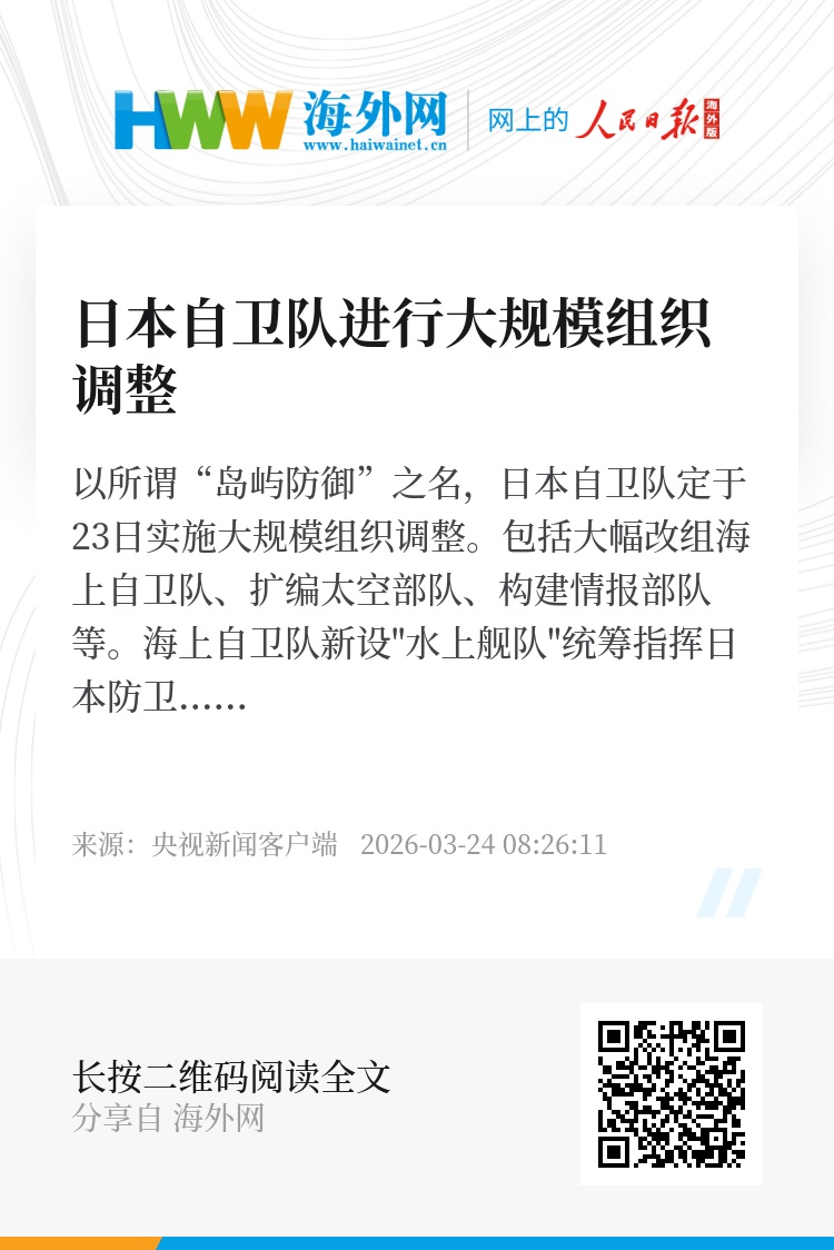 此外,日本陆上自卫队还将整合后勤教育体系,对负责队员教育的“武器学校”“需品学校”“运输学校”进行整合,改为“后方支援学校”。(总台报道员 柏春洋)